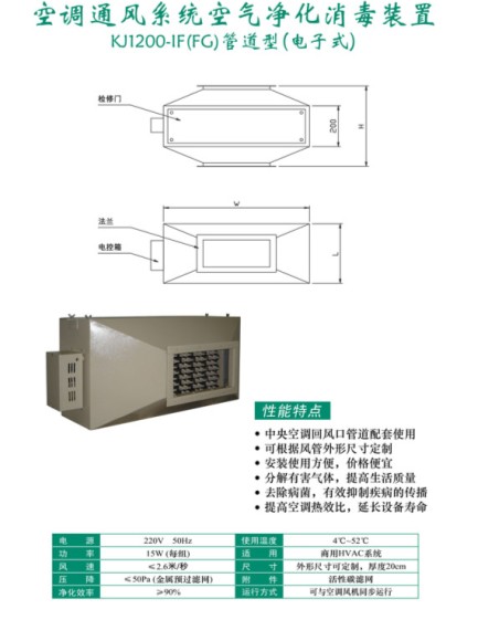 歐嘉牌空氣凈化消毒裝置KJ1200-LF(FG)管道型(電子式)